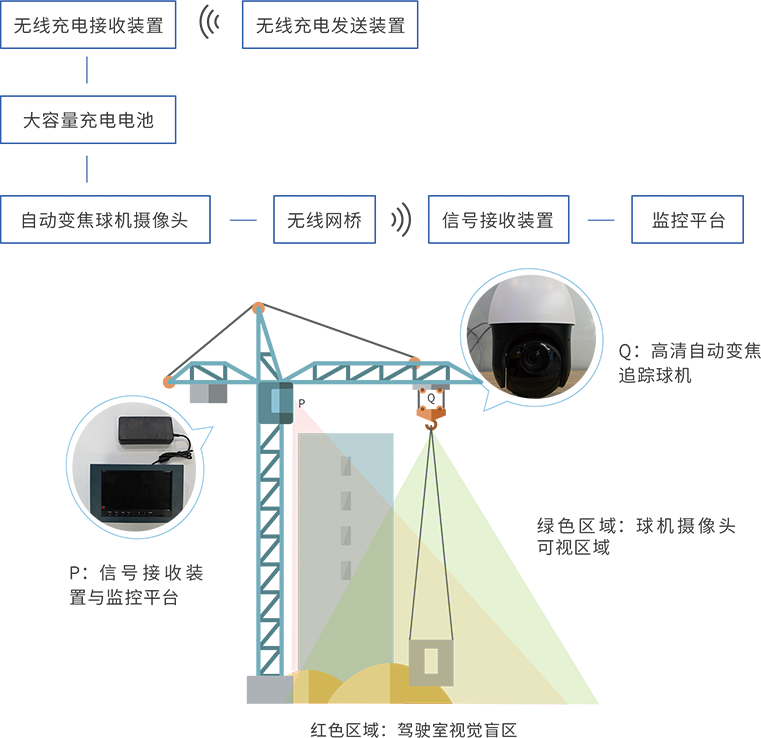 自動(dòng)聚焦追蹤吊鉤動(dòng)作畫面,預(yù)防安全事故 采用無線充電技術(shù),可以實(shí)現(xiàn)變幅小車電源自動(dòng)充電 駕駛員從監(jiān)控平臺(tái)的顯示屏上可以清晰看到吊鉤實(shí)時(shí)動(dòng)態(tài)畫面 具有省時(shí)省力、受天氣影響小、安全性高的優(yōu)勢