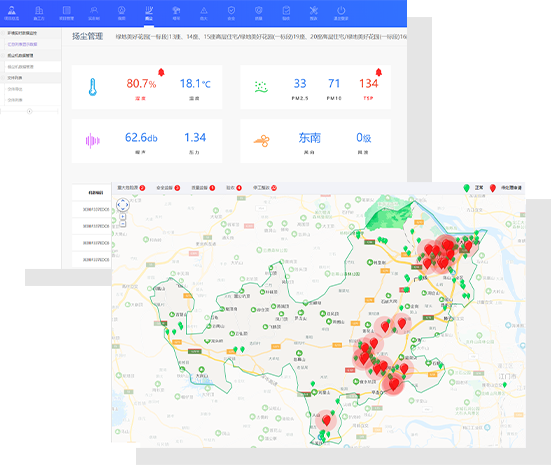 基于物聯(lián)網(wǎng)及人工智能技術(shù),利用無線傳感器技術(shù)和激光粉塵測試設(shè)備,實現(xiàn)揚塵在線監(jiān)控,方便環(huán)境部門實時監(jiān)測數(shù)據(jù),并及時做出決策。
